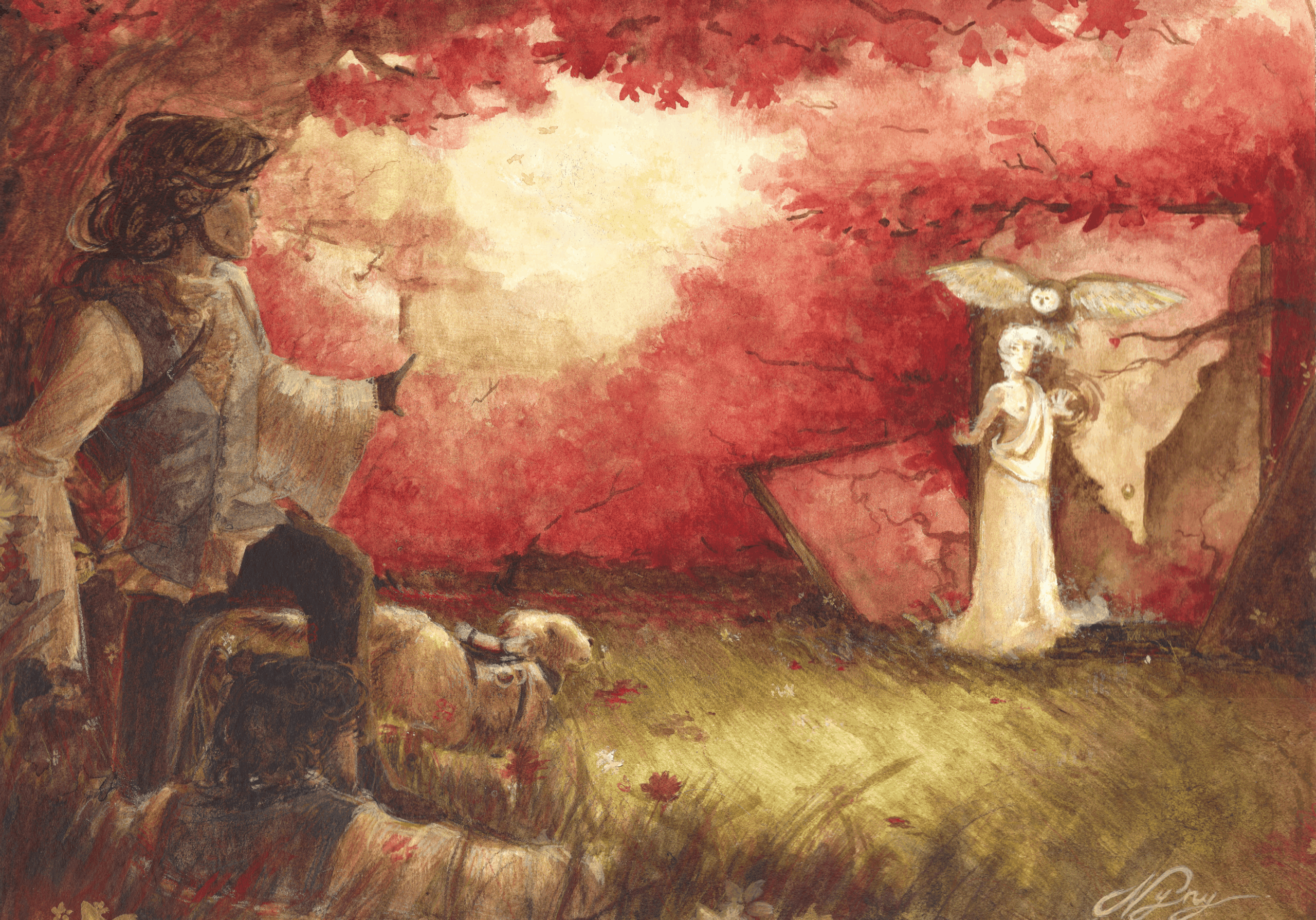 Cette peinture vous place dans un monde fictif et narre une des aventures des “Voyageurs