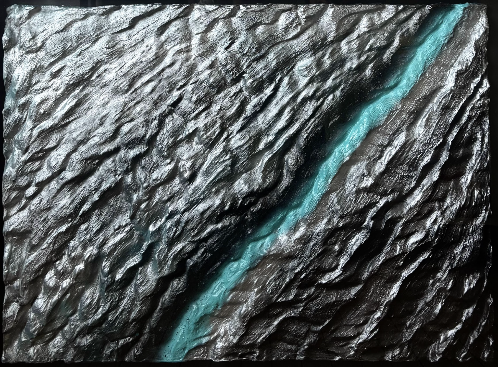 Mon œuvre capture cette « lignée bleue », ce canal étroit où nos mondes finissent par ne plus faire qu’un. C’est là que l’on persiste enfin, malgré le bruit du dehors et nos propres renoncements. C’est une célébration du courage d’exister sans filtre, une trace visuelle de ce qu’il reste de nous quand on décide, envers et contre tout, d’habiter sa propre vérité.